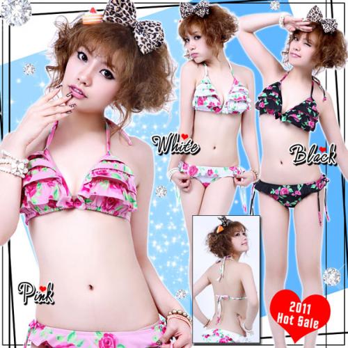 胸フリルでバストアップ♪ローズ三角ビキニ♪